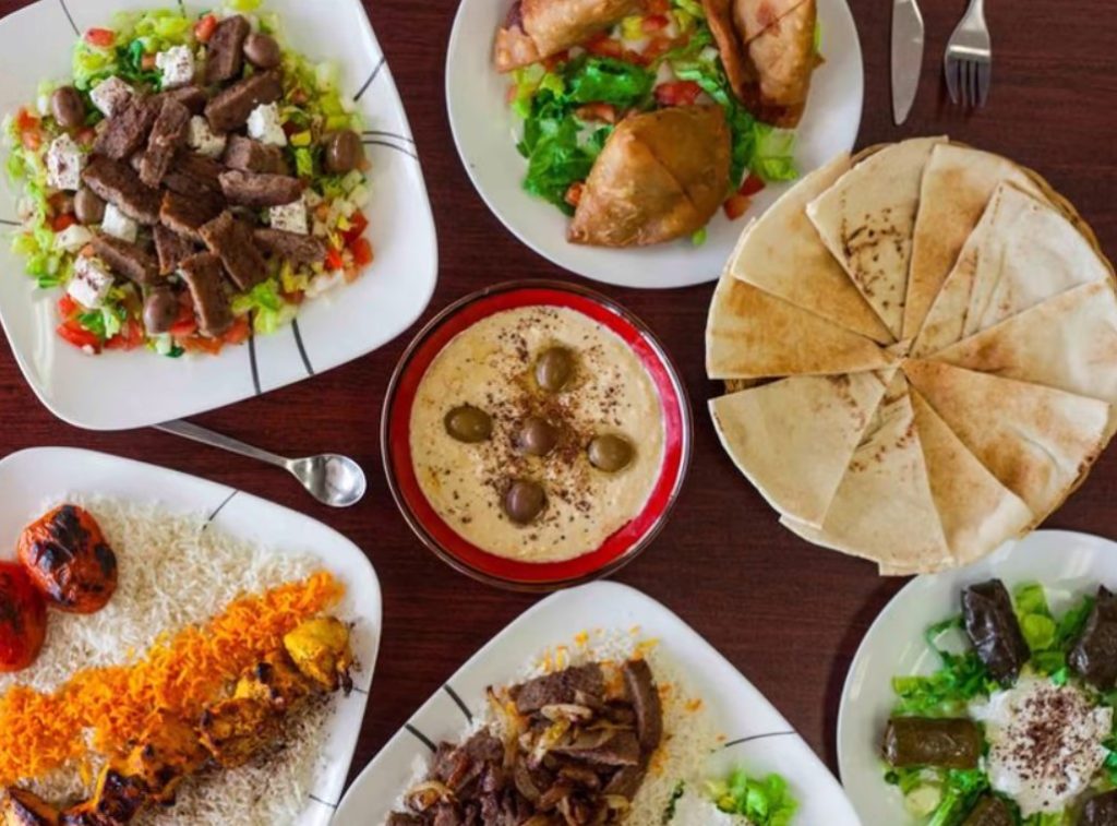 Aladdin’s Café serves Mediterranean food.