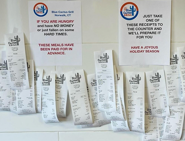 Anyone in need could simply take one of the receipts from the wall to the counter to receive a delicious gifted meal. No questions were asked, but to those in need, many prayers were answered.