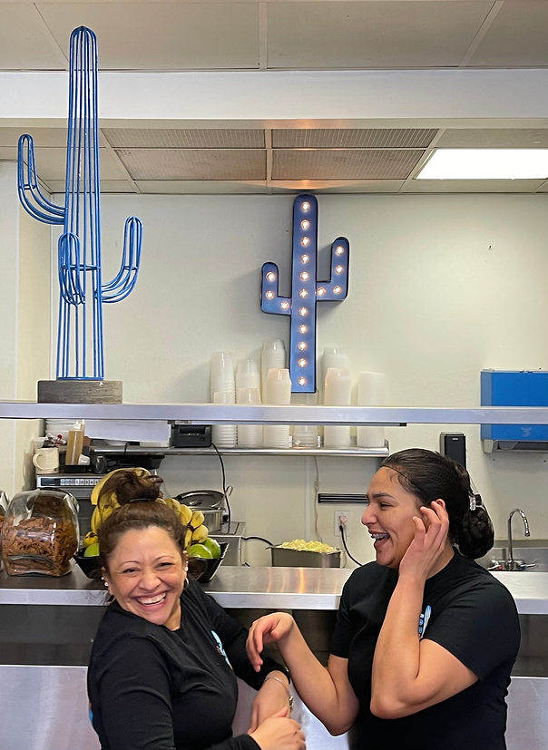 Together with hands-on owner/operators, Vic and Amanda, Blue Cactus Grill’s ten “man” crew comes in every morning, bright and early to begin prepping for the day. Always ready to greet customers with a smile, staff members like Janet (left) and Ela (right) are dedicated to always going the extra mile for their customers