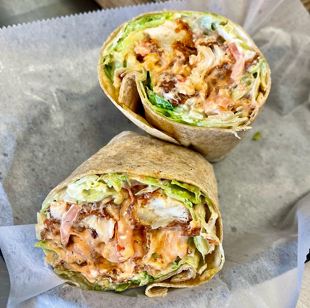 - CHICKEN CAESAR WRAP: Grilled chicken, Romaine romano cheese, and caesar dressing.